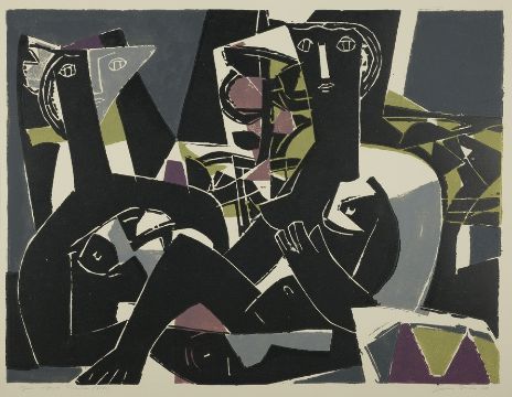 Farblinolschnitt, 57 x 79 cm, Exemplar 6/60, rechts unten signiert und datiert (19)60, links unten betitelt und nummeriert.