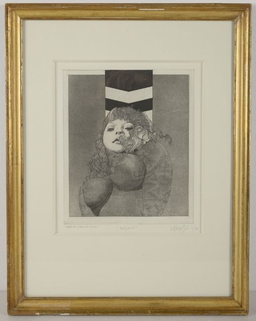 Radierung, 29 x 23,5 (32 x 28 Passepartout-Ausschnitt) cm, Probedruck, Exemplar 7/12, hinter Glas und im Passepartout gerahmt, rechts unten in Blei signiert, mittig unten betitelt, links unten römisch nummeriert und bezeichnet "epreuves d'artiste".