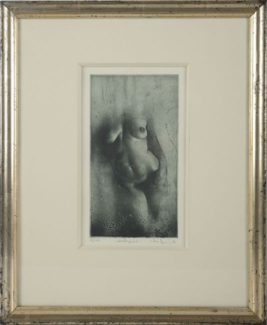 Radierung, 23 x 12,5 (25 x 15 Passepartout-Ausschnitt) cm, Exemplar 18/100, hinter Glas und im Passepartout gerahmt, rechts unten in Blei signiert und datiert (19)82, mittig unten betitelt, links unten nummeriert.