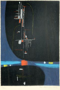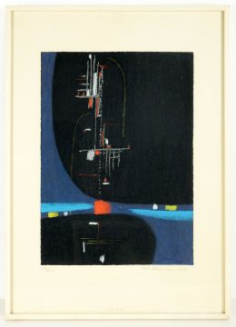 Farbserigraphie auf Bütten, 49 x 35,2 cm, Exemplar 43/100, hinter Glas gerahmt, rechts unten in Blei signiert und datiert, mittig unten betitelt, links unten nummeriert.