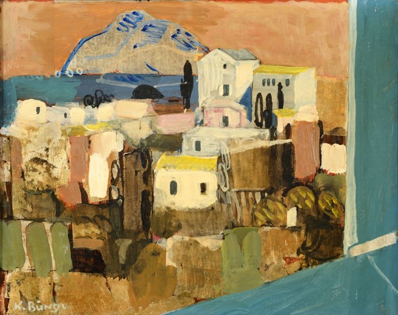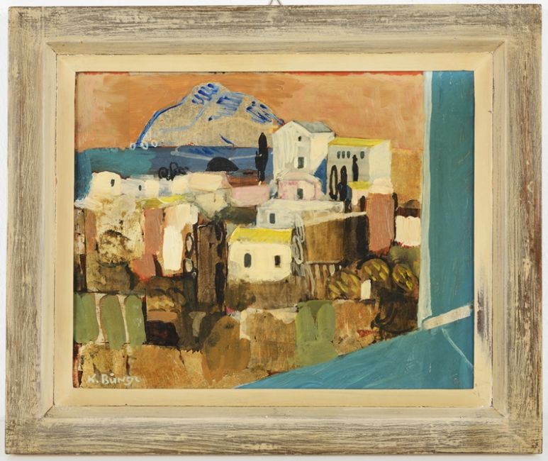 Mischtechnik auf Hartfaserplatte, 21 x 26,5 cm, gerahmt, links unten signiert.
